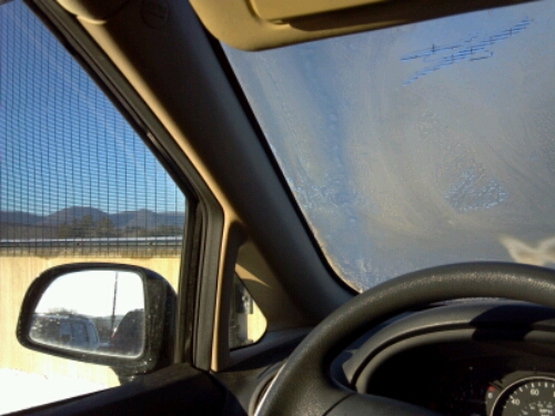Once I got to work, I started to look forward to class. And then work got crazy and I almost couldn’t leave. I raced to the car, hoping there was still enough time to drive to the studio, find a parking place, change, and make it to class on time. When I got to the car the entire inside of the windshield was covered with ice. All of the other windows were completely clear.