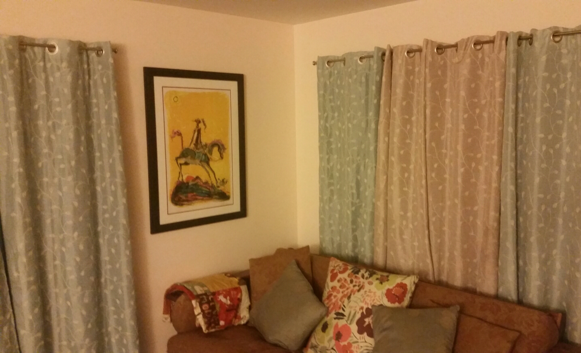 I managed to sneak in a little bit of homemaking, hanging two items that have been languishing in the mud room coat closet since we arrived in mid-October. Don Quixote is in the living room. Just across from him, near the front door is one of the mirrored coat racks.  These things make me smile.